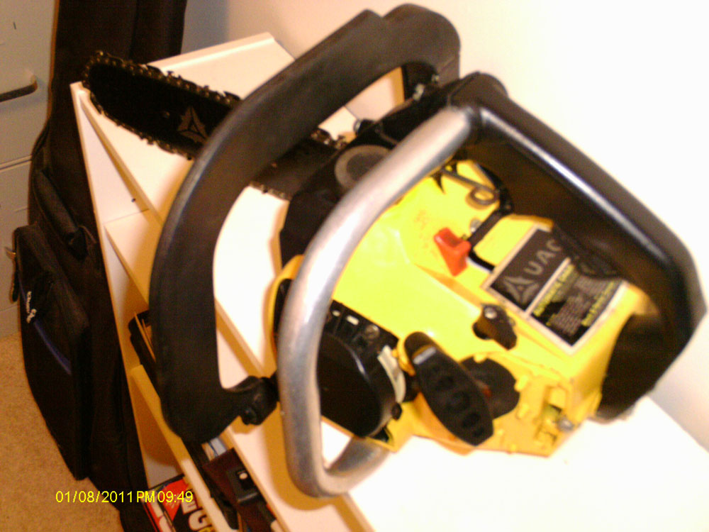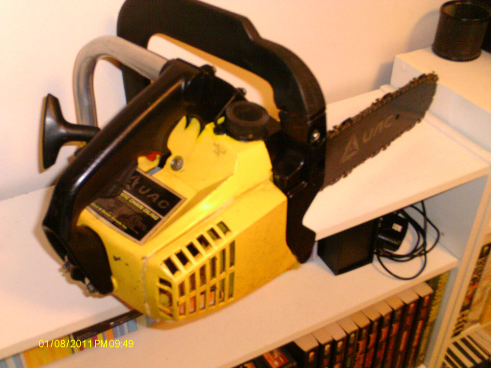 Of course I know nothing about chainsaws except that gas and oil goes in, handle is pulled, trees and/or demon limbs get divided. "Couldn't be too difficult to obtain the same model, gut it, clean it and paint it up", I said to myself.